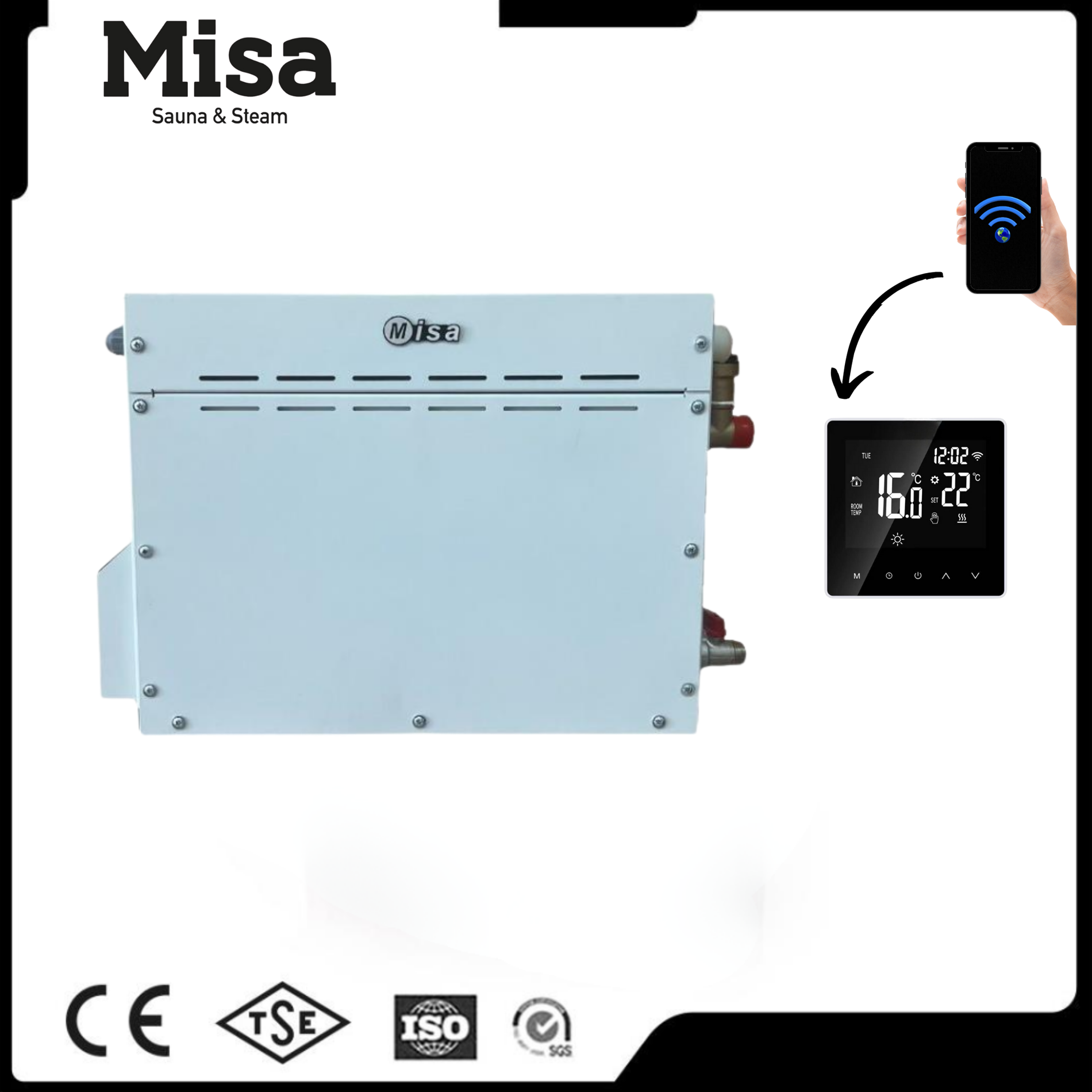Ev tipi kullanım için tasarlanmış, bir buhar odası jeneratörü ‘dür. En iyi malzemelerden ve parçalardan imal edilmiştir. Elektrik ve su bağlantısı gerektirir. Harici kontrol paneli ile kumanda edilir.