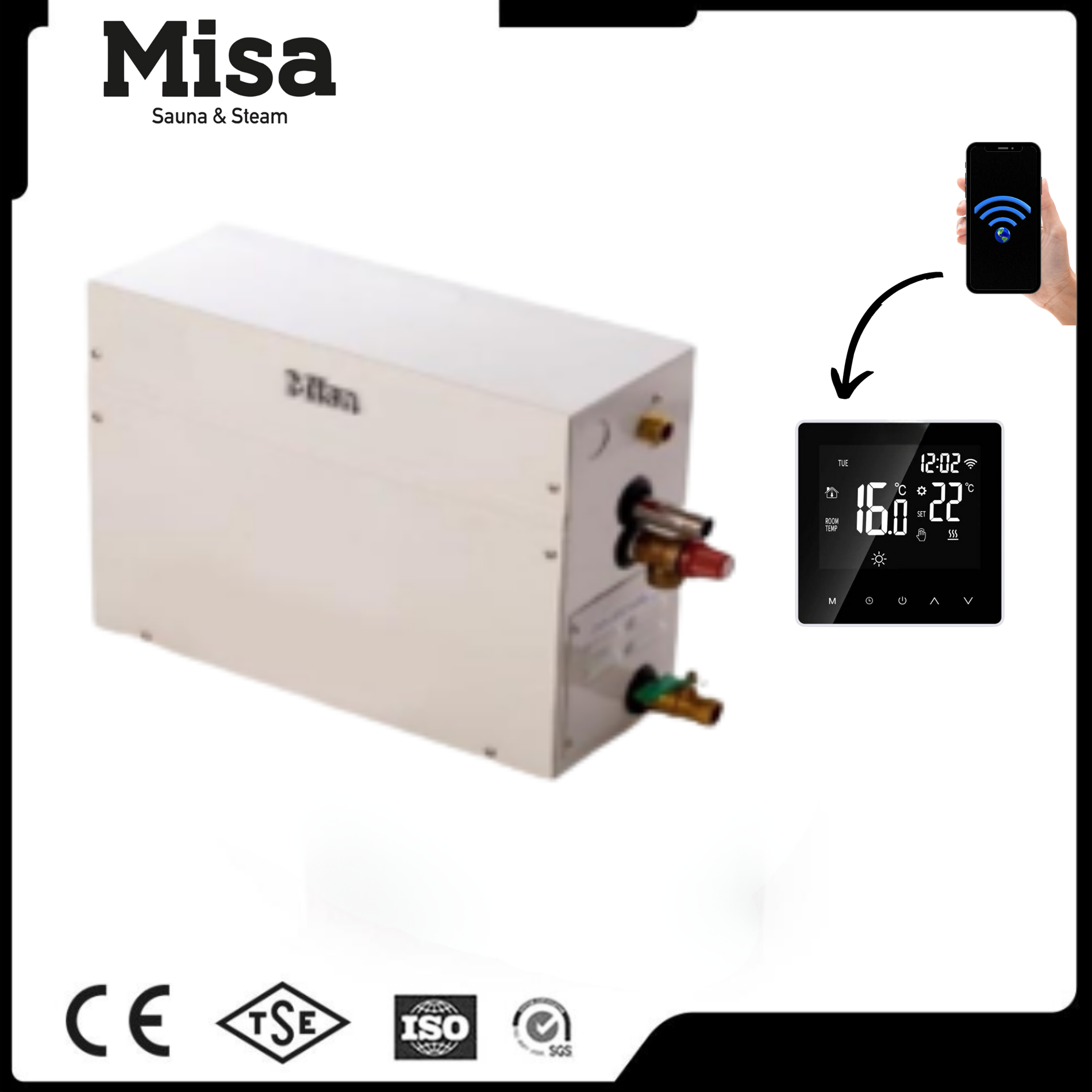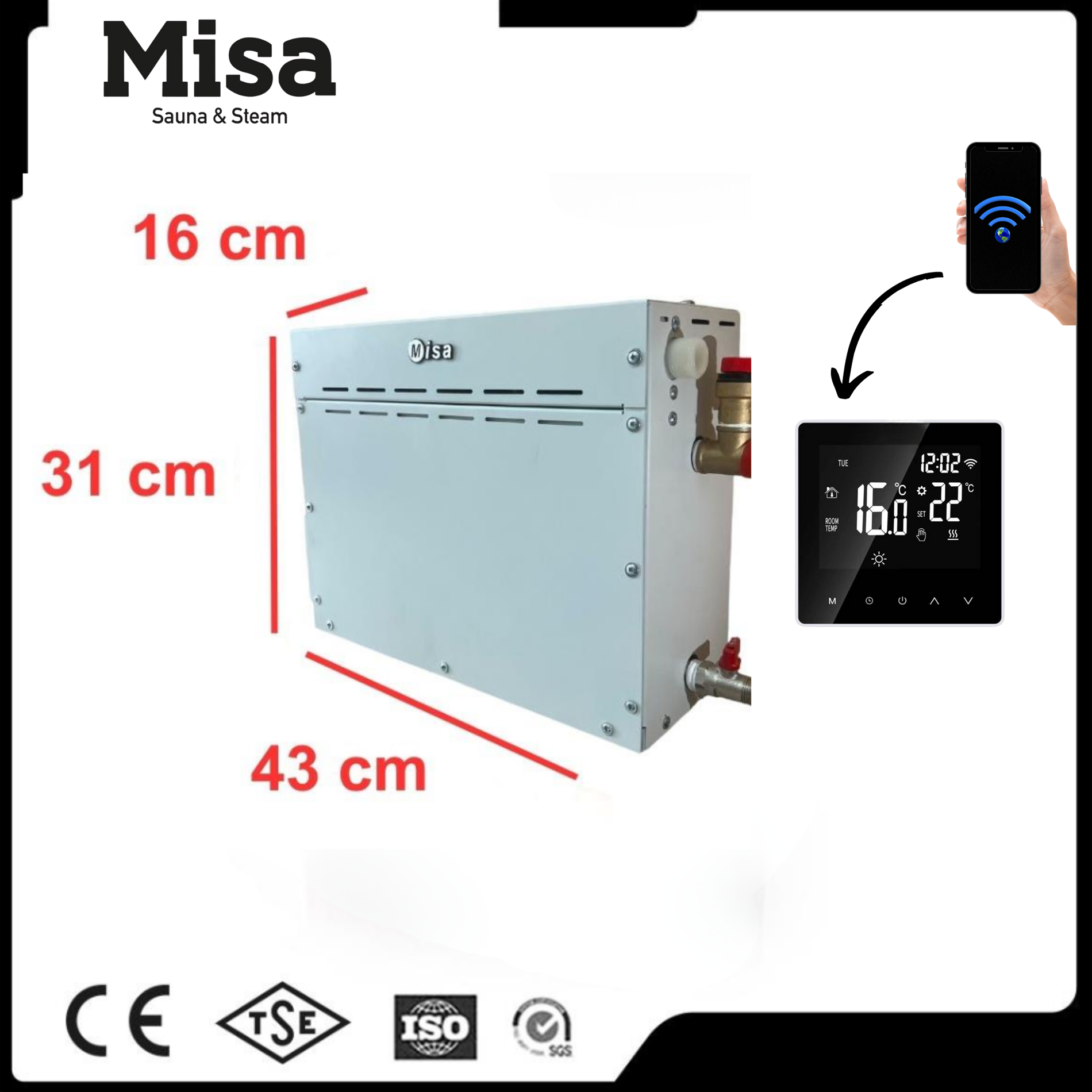 Paket İçeriği: Misa Dijital Buhar Kontrol Paneli, Kumanda Paneli ve Cihaz arasındaki bağlantı kablosu, Oda sıcaklık termostatı ürün ile birlikte verilmektedir.